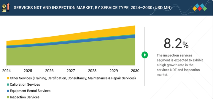 サービス非破壊検査(NDT)および検査市場、サービス別(市場規模および2030年までの予測 – 百万米ドル)