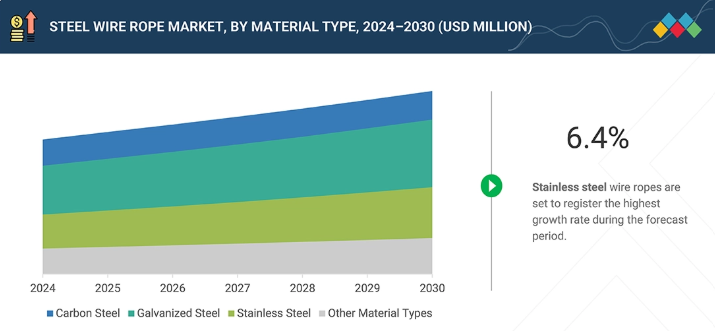 顧客トレンドの変化や混乱は消費者の事業に影響を与え、それがエンドユーザーの収益に影響を及ぼします。結果として、エンドユーザーへの収益影響は鋼索サプライヤーの収益に影響し、さらに鋼索メーカーの収益にも波及すると予想されます。耐食性、持続可能性、リサイクル性は、安全性向上、ライフサイクルコスト削減、設備のダウンタイム低減の鍵となる。エネルギー効率とロープ安全性のスマート監視は、ベンダーが目指す主要な成果である。