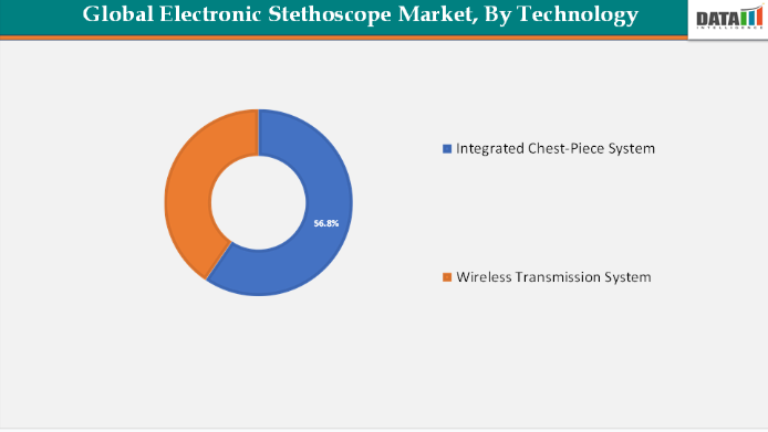 一体型チェストピースシステムセグメントは、電子聴診器市場シェアの56.8%を占めると推定される。