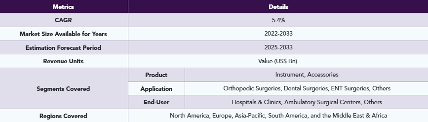 外科用ドリルの世界市場規模は2033年までにCAGR 5.4%で拡大する見通し