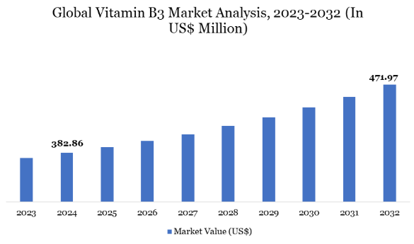 ビタミンB3の市場規模は2024年に3億8,286万米ドルに達し、2032年には4億7,197万米ドルに達すると予測され、予測期間2025-2032年のCAGRは2.65%で成長する見込みです。