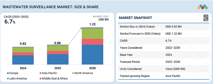 世界の廃水監視市場は大幅な成長が見込まれており、2025年の8億8,000万米ドルから2030年には12億2,000万米ドルに達し、年平均成長率(CAGR)は6.7%と予測されている。廃水監視は、ポリオやサル痘(mpox)、抗菌薬耐性(AMR)などの無症状感染を含む公衆衛生上の脅威に対する信頼性の高い早期警戒ツールとして認識されつつある。COVID-19以降、政府や保健機関はこれらのシステムを標準的な疫学枠組みに統合するケースが増加している。一方、リアルタイム解析、ゲノムシーケンシング、バイオセンサー技術の進歩により、廃水ベースの検出の感度と速度が向上している。