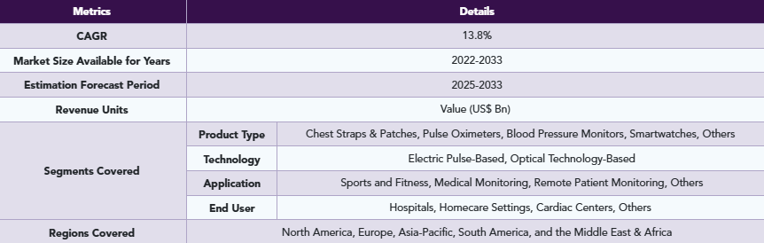 ウェアラブル心拍モニタリングデバイス市場規模は2024年に25億8,000万米ドルに達し、2033年までに81億6,000万米ドルに達すると予測されており、2025年から2033年の予測期間中に13.8%のCAGRで成長する見込みです。