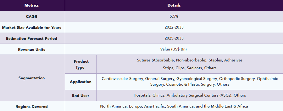 世界の創傷閉鎖製品市場(2025 – 2033):製品種類別、用途別、エンドユーザー別、地域別分析レポート